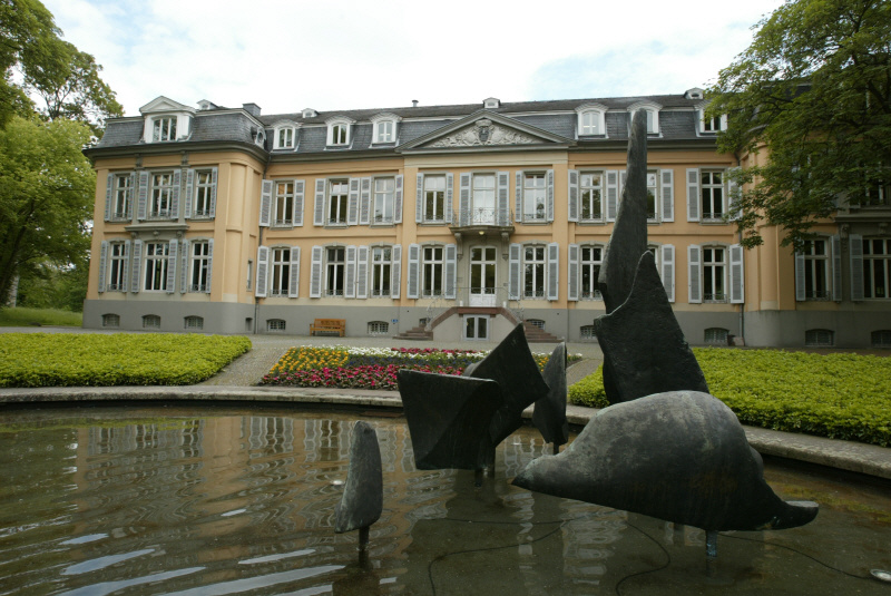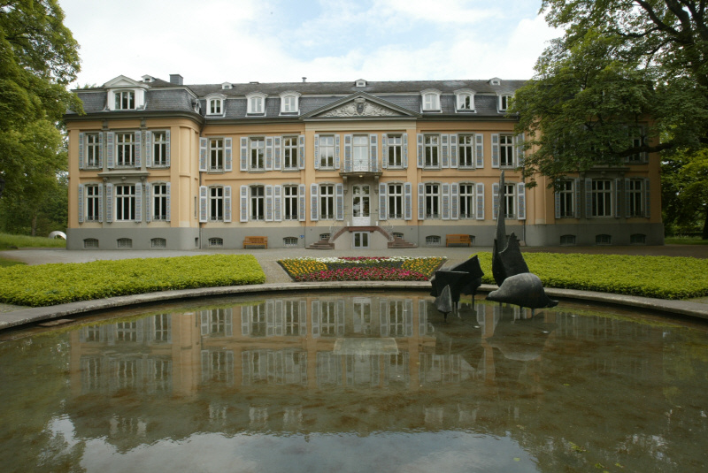 Schloss und Museum Morsbroich Das Schloss Morsbroich liegt, umgeben von einem weitläufigen Park, am östlichen Rand der Stadt Leverkusen. 1220 erstmals urkundlich erwähnt, war Morsbroich von 1619 bis 1803 Sitz des Deutschen Ritterordens. 1774 ließ Ignaz von Roll die Burg abbrechen und durch ein barockes Schlösschen ersetzen. 1857 übernahm die Familie des Viersener Seidenfabrikanten Friedrich von Diergardt das Haus und ließ es 1885 um zwei Flügel erweitern. 1974 erwarb die Stadt Leverkusen das Schloss Morsbroich, das nun das Museum beherbergt. |